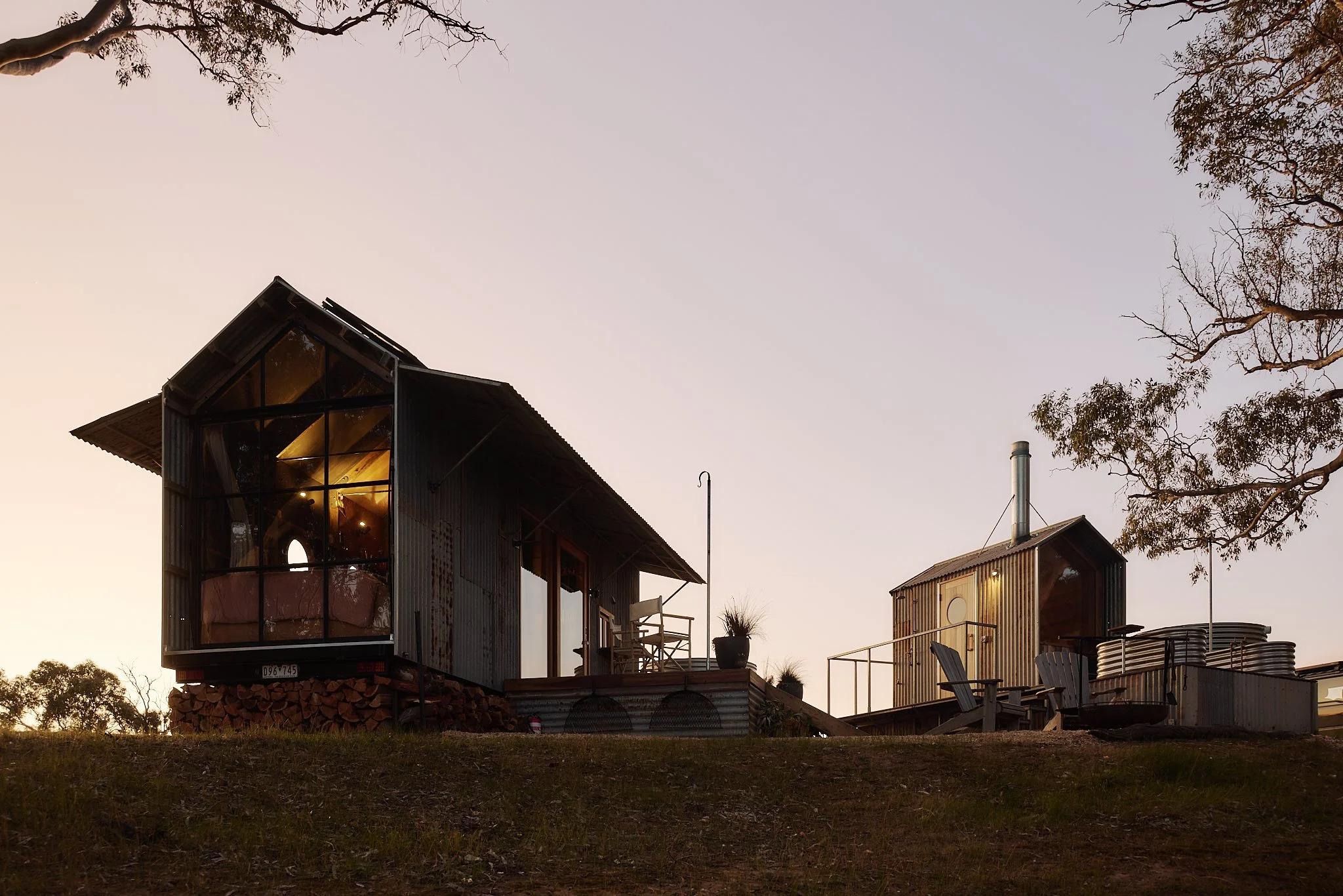 Featuring fold-up corrugated eaves, and timber framed french & porthole windows, this building is all about breaking away from the trailer’s footprint. But the magic doesn’t stop there. Inside, the structural bones are exposed, and the natural textures of the surfaces are left bare, creating an immersive experience that’s unlike anything you’ve ever seen.